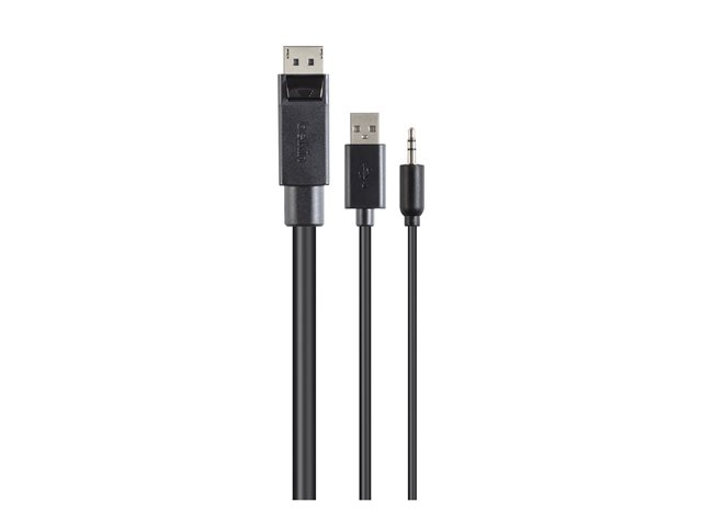 Belkin Secure KVM Combo Cable - Näppäimistön / hiiren / videon / audion kaapeli - TAA-yhteensopiva - USB, mini jack, DisplayPort (uros) to mini-phone stereo 3.5 mm, USB Type B, DisplayPort (uros) - 3.04 m - musta F1D9019B10T