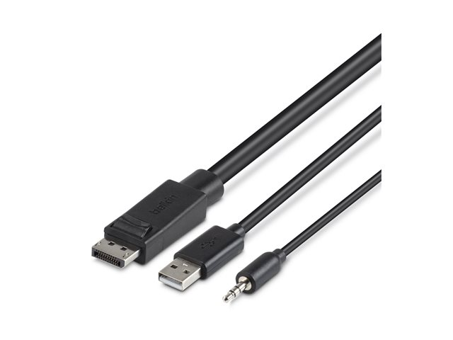Belkin Secure KVM Combo Cable - Näppäimistön / hiiren / videon / audion kaapeli - TAA-yhteensopiva - USB, mini jack, DisplayPort (uros) to mini-phone stereo 3.5 mm, USB Type B, DisplayPort (uros) - 1.83 m - musta