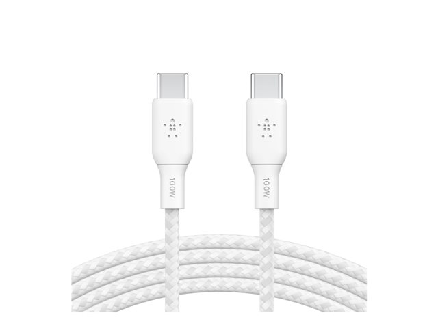 Belkin BoostCharge - USB-kaapeli - 24 pin USB-C (uros) to 24 pin USB-C (uros) - 3 m - valkoinen