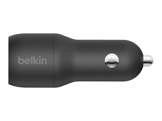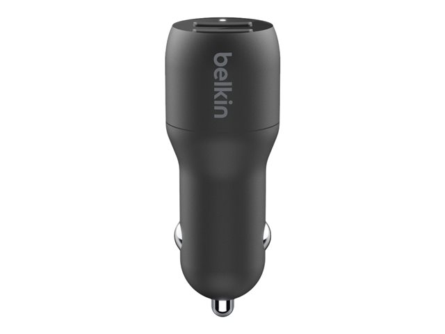 Belkin BoostCharge Dual Charger - Auton virtasovitin - 24 watti(a) - 4.8 A - 2 lähtöliittimet (USB) - johdossa: USB-C - musta CCE001BT1MBK