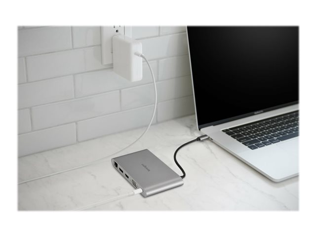 OminaisuudetKaksinkertainen näyttötuki, DisplayPort Alt Mode, 85 W:n virransyöttö (läpivienti), alumiinikotelo