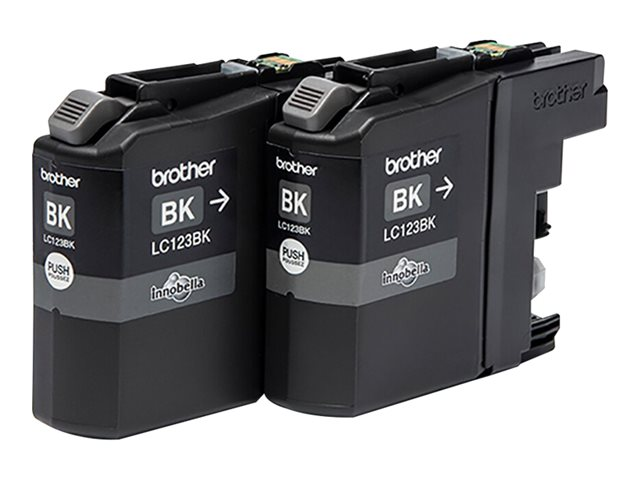 Brother LC123BK - 2 pakettia - Tuottoisa - musta - alkuperäinen - blisteri akustisella/sähkömagneettisella hälytyksellä - mustepatruuna malleihin Brother DCP-J100, J105, J132, J152, J552, J752, MFC-J245, J470, J650, J6520, J6720, J6920